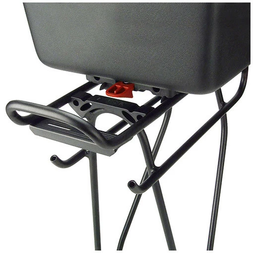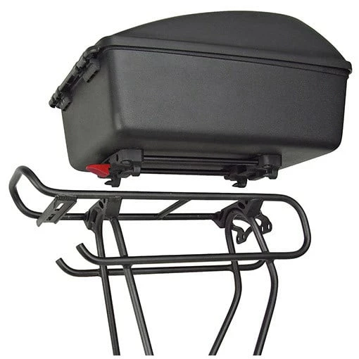 Zur Befestigung wird die Box auf Ihren Racktime-Gepäckträger geschoben, bis sie