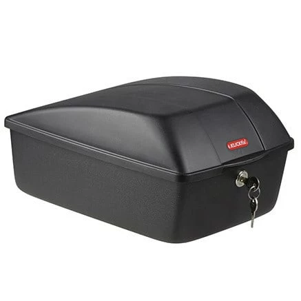 Die schwarze Fahrradbox mit ihrer widerstandsfähigen