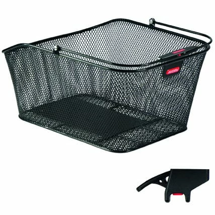 Der schwarze Hinterradgepäckträger City Korb 2 von Klickfix ermöglicht es Ihnen, einfach und komfortabel Einkäufe und andere