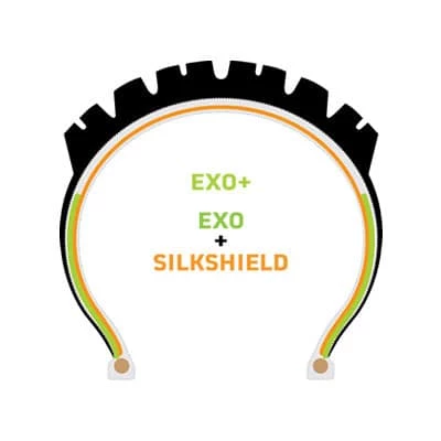 Pannenschutztechnologien von Maxxis vereint – EXO und Silkshield. Während sich