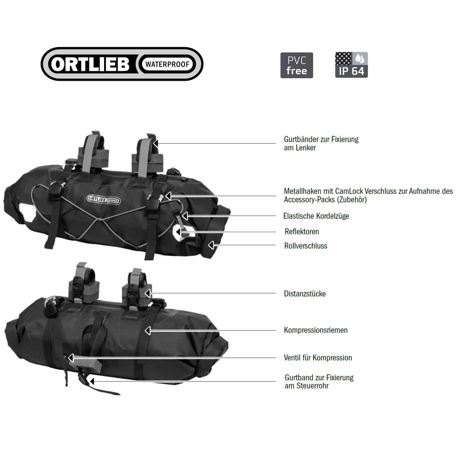 - Lieferumfang: Kompakte Lenkertasche mit Kompressionsriemen,