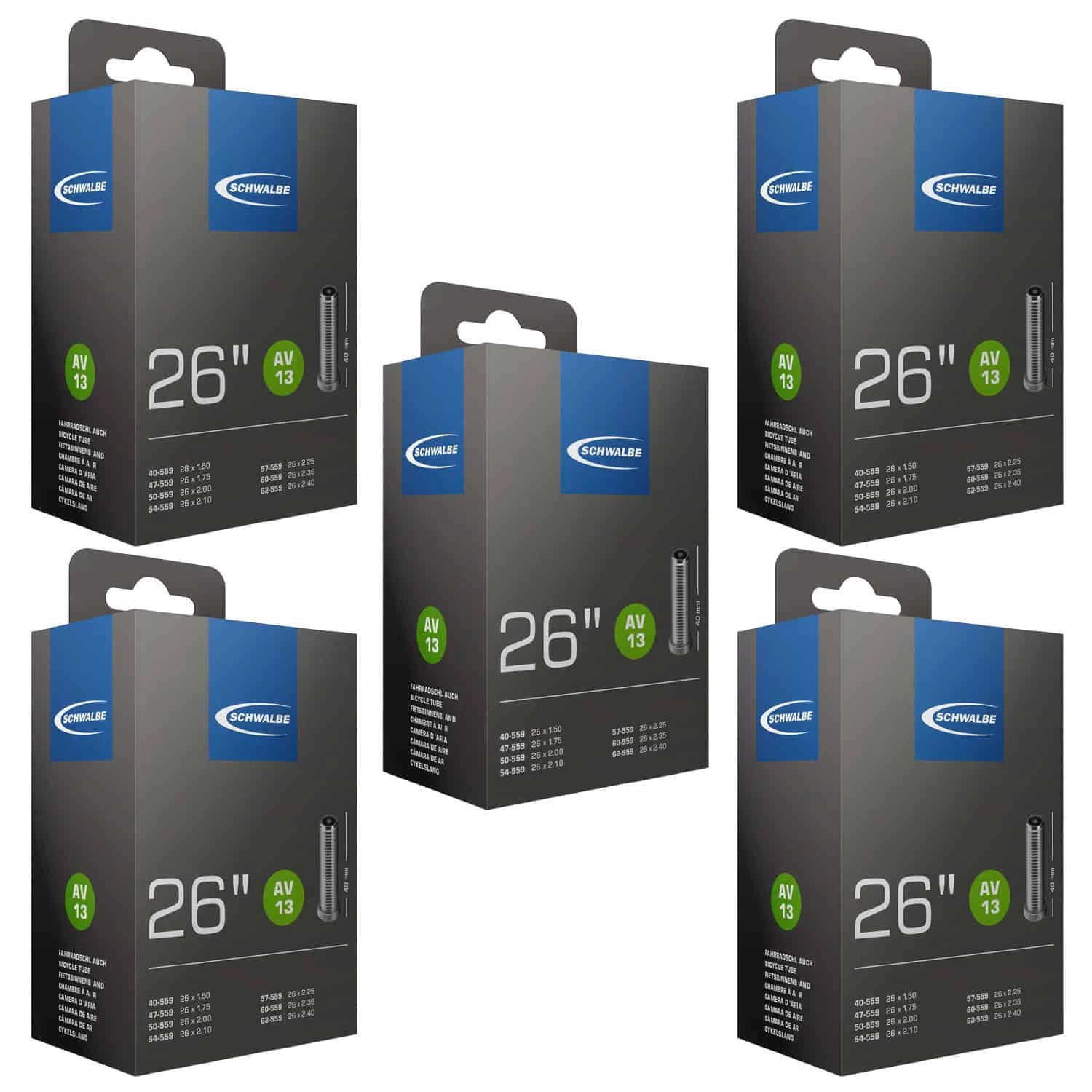 - Lieferumfang: 5x Fahrrad-Schlauch Schwalbe AV 13