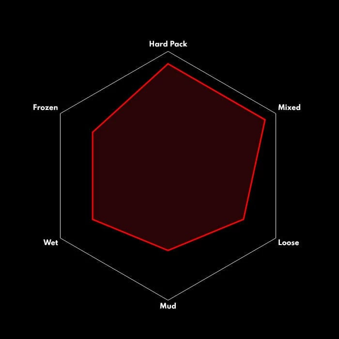 Profil bei, dessen starke Stollen an der Seite eng angebracht sind. Zudem weist